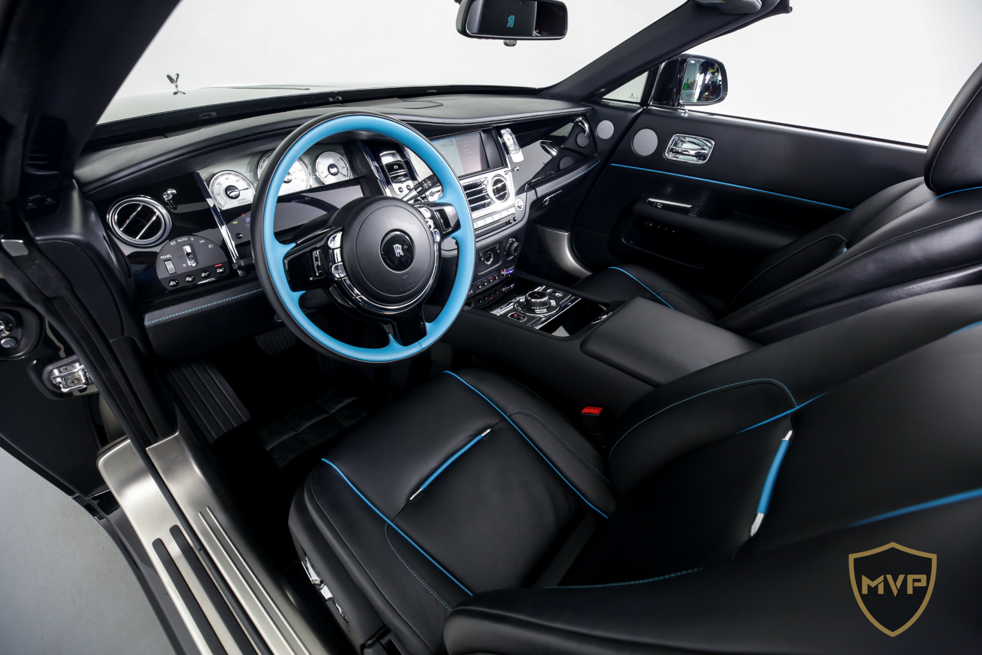 Enter through the massive rear-hinged, power-closing doors, and the Dawn seems almost human scale. Its tough to tell which switches are plastic and which are metal, but all work with straightforward ease. Even the Spirit of Ecstasy Rotary Controller that navigates through the menus on the 10.3-inch LED screen operates perilously close to intuitively, no doubt because with just a few changes to the graphics, its actually BMWs infotainment system. Our test car had the optional radar-based cruise control and lane-departure warning aboard; blind-spot monitoring is not available on the Dawn.4